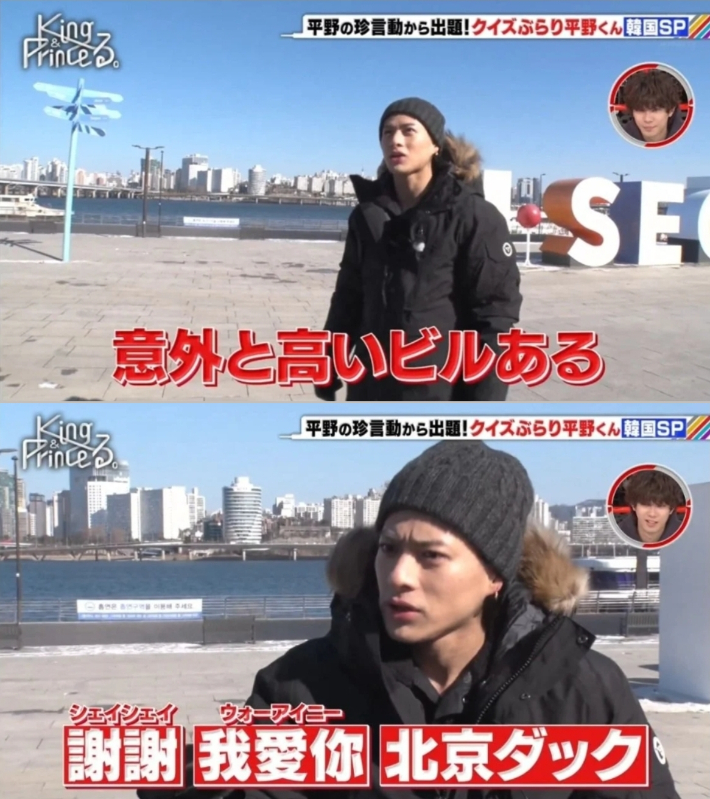 아는 한국어가 있냐는 제작진의 질문에는 "쎄쎄, 워아이니, 베이징 덕" 이 3개 뿐이라고 말한 히라노. 사실 한국에 대해 알고 있으면서도 '나는 뭐 하는 나라인지도 모르고 관심도 없다' 라는 걸 어필하는 음침한 수법이 아닐 수 없었습니다. 왜냐면, ‘서울’이라고 적힌 조형물 바로 앞에서 한국의 수도는 어디냐는 질문을 받았을 때 역시 '파쿠' 라고 얼토당토 않은 대답을 했기 때문이죠.