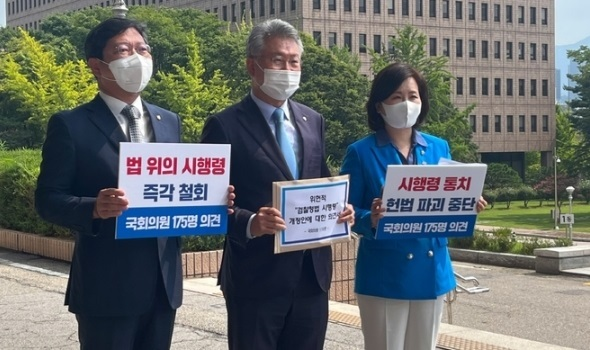 셋째, 위헌 위법한 대통령령 통치로 헌법 질서를 파괴한 죄를 고발합니다. 대통령령은 법률이 위임한 범위에서만 만들 수 있습니다. 그러나 윤석열 대통령은 정부 조직법에 위반한 대통령령으로 법무부에는 인사정보관리단, 행안부에는 경찰국을 만들었습니다. 이를 통해 사법부의 독립마저 위협하고 있고 경찰의 정치적 중립을 훼손하고 있습니다. 나아가 국회가 어렵게 합의한 검찰 개혁법에 정면으로 위반하는 대통령령을 만들어 검찰개혁을 무력화시키고 입법부를 조롱하고 있습니다. 헌법을 수호할 책임이 있는 대통령이 스스로 헌법과 법률을 위반한 대통령령을 만드는 것은 탄핵사유에 해당하는 커다란 죄악입니다.